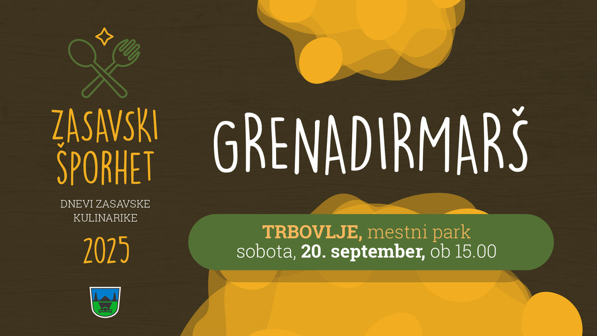V Trbovljah bo ponovno zadišalo po grenadirmaršu – preprosti, a značilni zasavski jedi iz testenin in krompirja. Ekipe javnih zavodov, društev, podjetij in posameznikov bodo tekmovale, kdo bo pripravil najbolj okusno različico te priljubljene jedi, strokovna komisija pa bo razglasila zmagovalce. Dogodek obljublja edinstveno kulinarično doživetje, sproščeno druženje, zabavno popoldne v mestnem parku ter brezplačno degustacijo pripravljenih jedi.