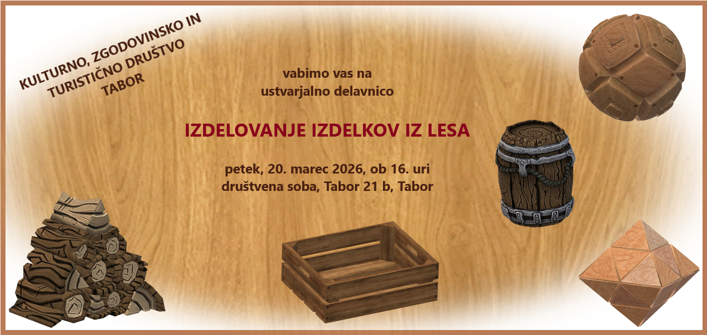 V društvu bomo v petek, 20. marca 2026, od 16. ure dalje ustvarjali prijetne izdelke iz lesa. Vljudno vabljeni. Prepustite se domišljiji in ustvarjajte z nami.