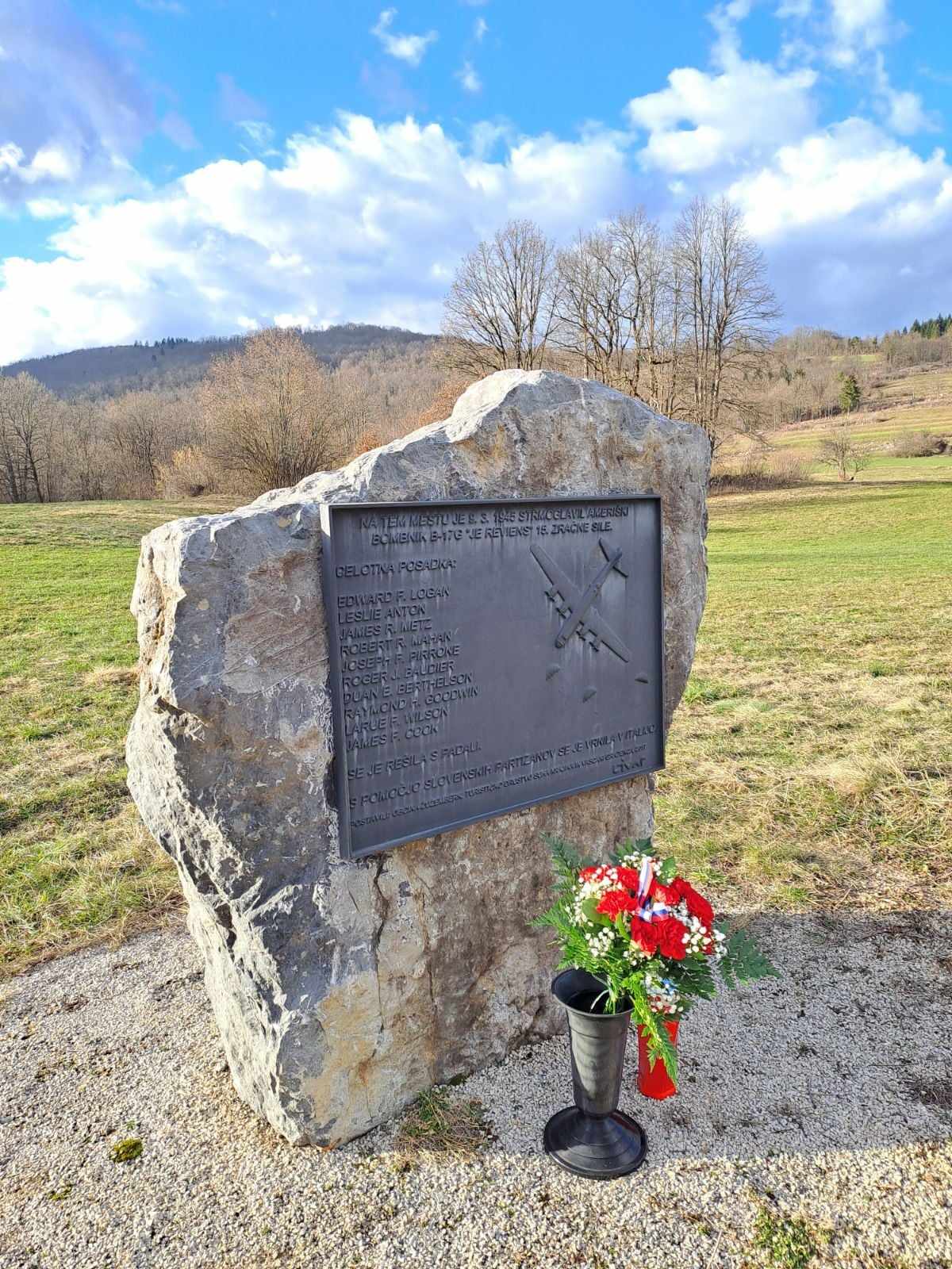 spominska ura posvečena posadki ameriškega bombnika B-17 s srečnim koncem v Gradencu v Suhi krajini