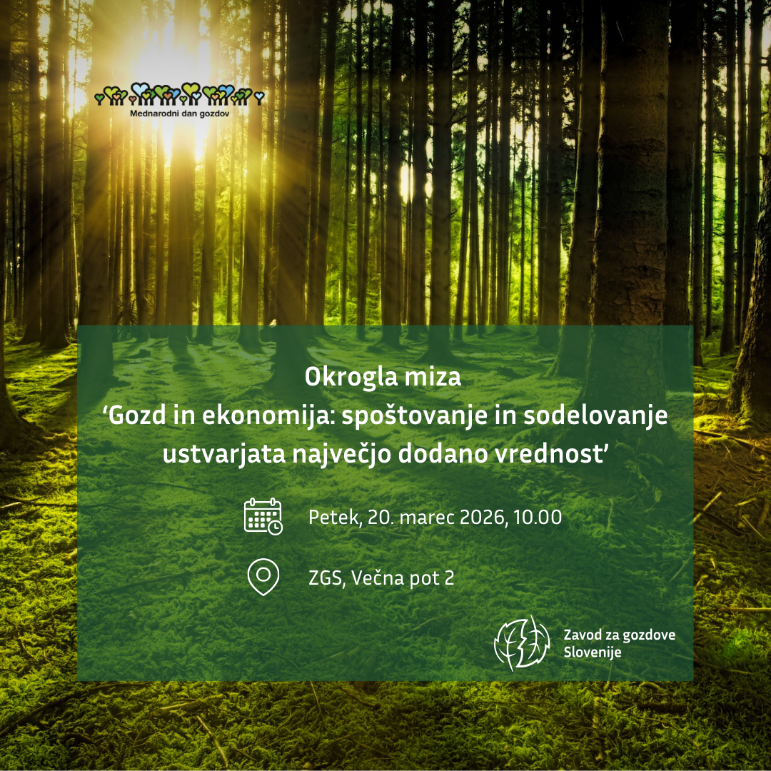 Ob Mednarodnem dnevu gozdov, ki ga vsako leto obeležujemo 21. marca, vas vljudno vabimo na okroglo mizo. Potekala bo v petek 20. 03. 2026 ob 10.00h na Zavodu za gozdove Slovenije.