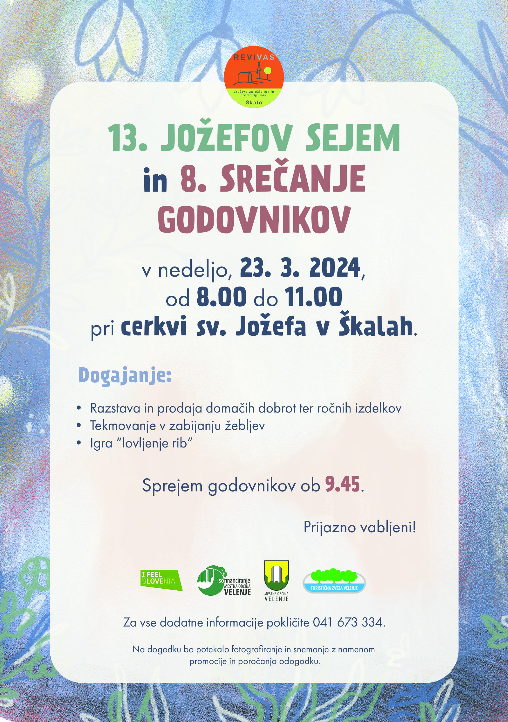 Zbor udeležencev srečanja godovnikov je v nedeljo, 23. marca 2025, ob 9:45 uri na prizorišču sejma, pri cerkvi sv. Jožefa v Škalah.