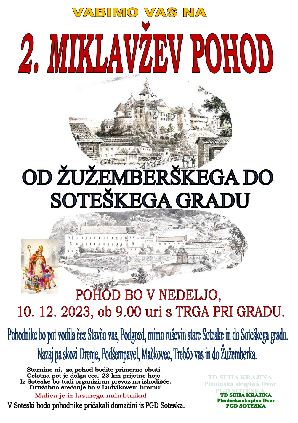 Vabljeni na 2. MIKLAVŽEV POHOD, ki bo V NEDELJO, 10. 12. 2023, ob 9.00 uri s TRGA PRI GRADU.