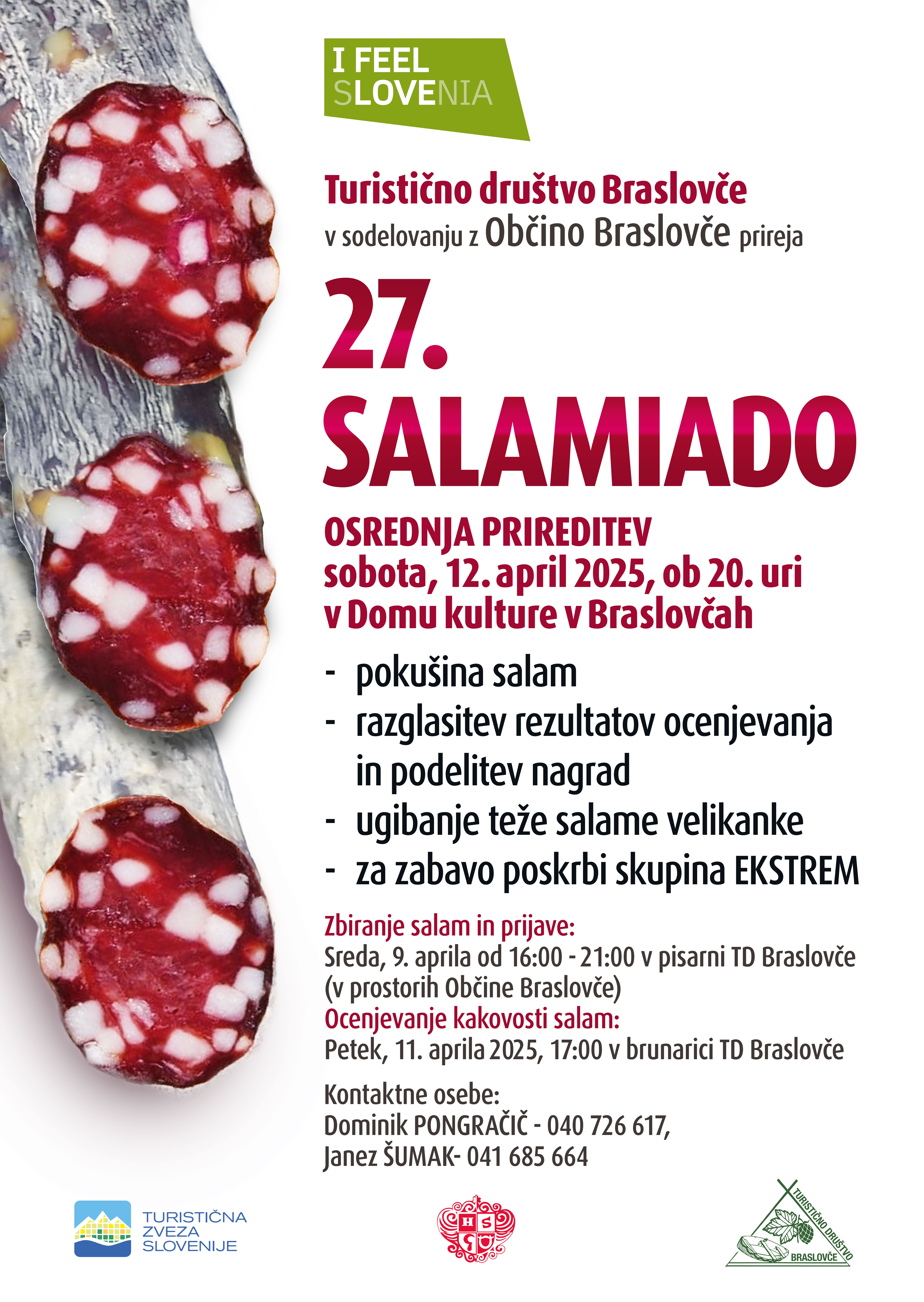 Osrednja prireditev s pokušino salam in razglasitvijo rezultatov bo potekala 12.4. ob 20:00 v prostorih Doma Kulture Braslovče.