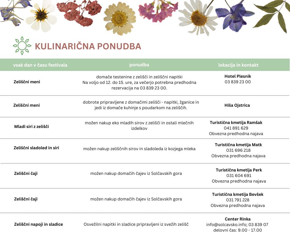 Vljudno vabljeni na Festival zelišč Zgornje Savinjske in Šaleške doline na Solčavskem, ki bo potekal od 15. do 22. junija 2024.
