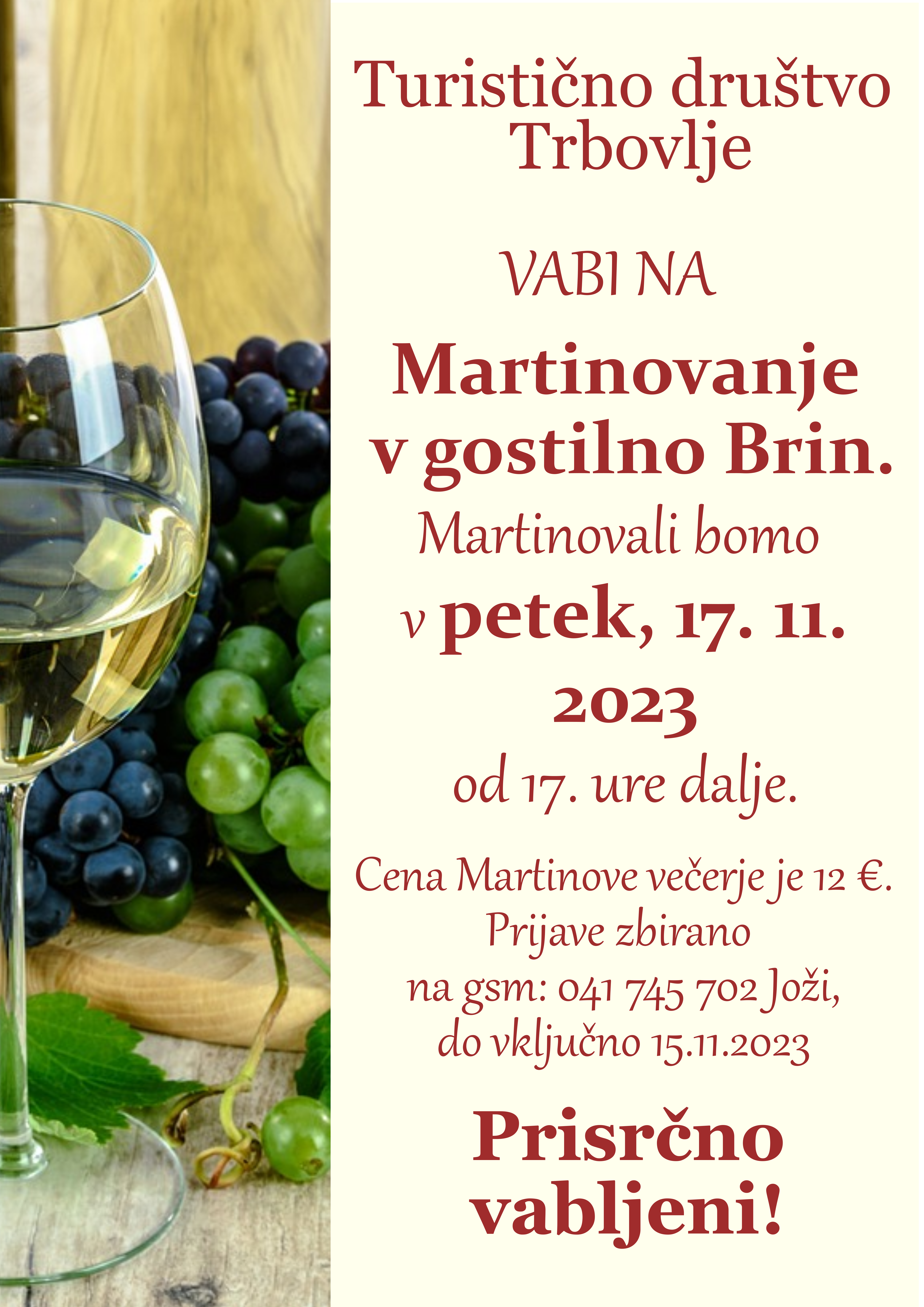 Pridružite se nam na Martinovanju v gostilni Brin, v petek 17. 11. 2023 ob 17. uri