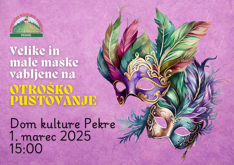Oblecite svoje najljubše maske in se pridružite razigranemu pustnemu dogajanju! Komaj čakamo, da se skupaj poveselimo.