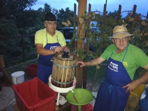 trgatev potomke najstarejše trte iz Maribora ter »prešanje« grozdja ob