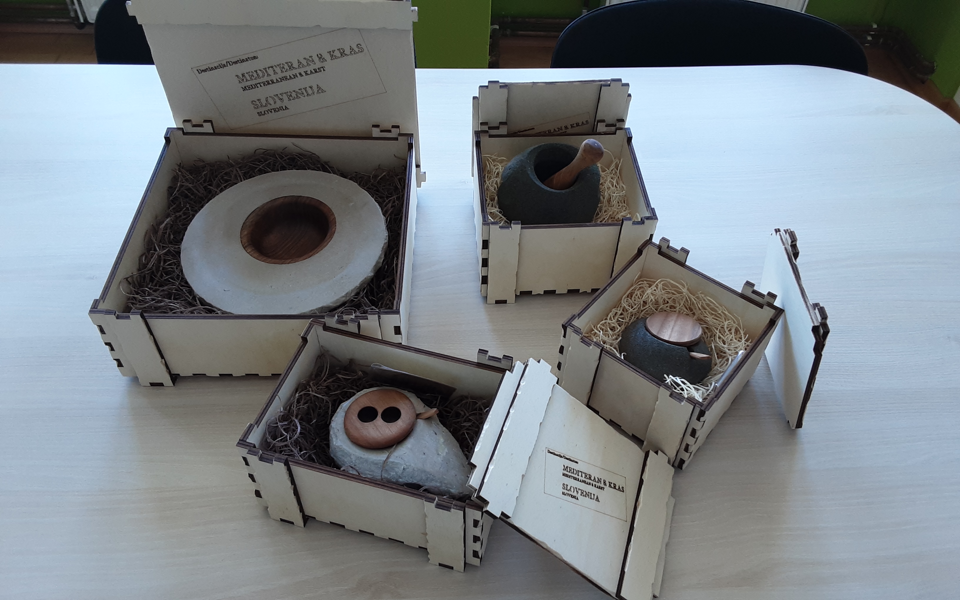 Zlato priznanje je prejel Luka Boltar za štiri sodobno oblikovane in odlično opremljene izdelke iz kraškega kamna in soškega prodnika: solnici, terilnik ali možnar in kamnit krožniček. (Foto)