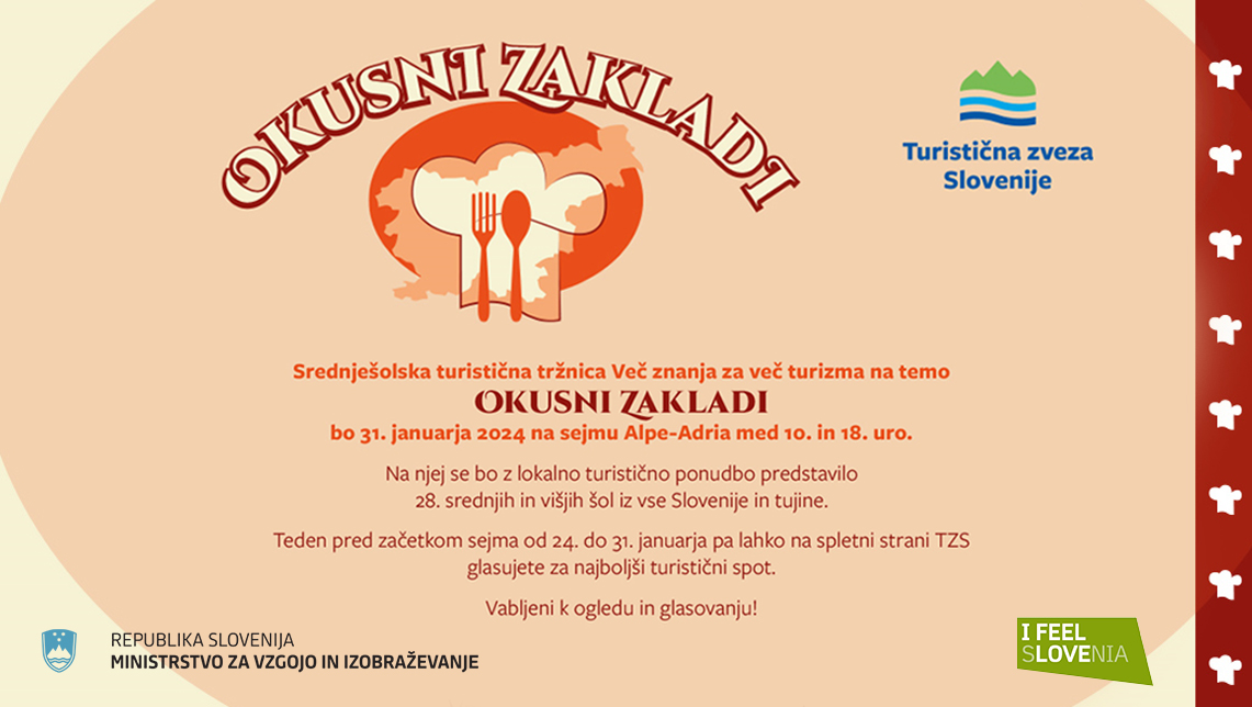 Turistična tržnica s predstavitvijo bo potekala prvi dan sejma Alpe-Adria v Ljubljani. V Stebrni dvorani se bo predstavilo 28 srednješolskih in višješolskih ekip iz Slovenije in tujine (Italija, BIH in Hrvaška). Na sejmu bodo mladi na stojnicah predstavili zamisli za nove kulinarične spominke, posneli pa so tudi že promocijske spote.
