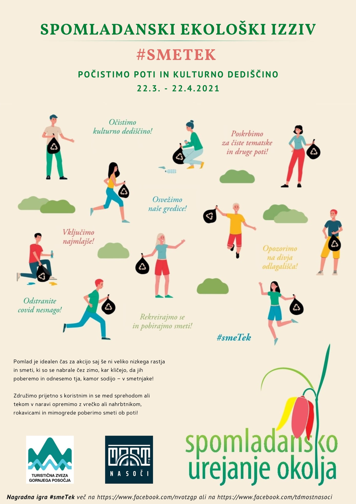Tradicionalno akcijo spomladanskega urejanja okolja, ki jo vsako leto simbolično začenmo ob Svetovnem dnevu vode (22. marec) ter zaključimo ob Svetovnem dnevu Zemlje (22. aprila), smo pri Turistični zvezi Gornjega Posočja v sodelovanju s TZS in drugimi društvi zaradi ukrepov povezanih z epidemijo covida letos zastavili individualno.